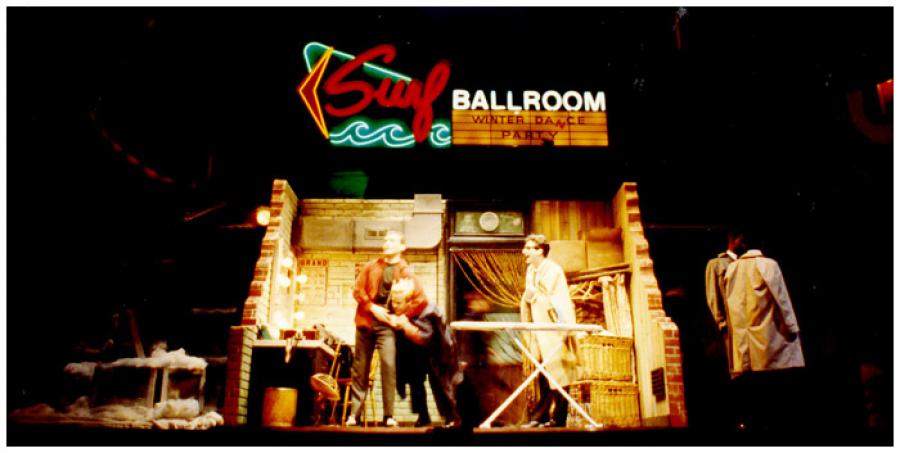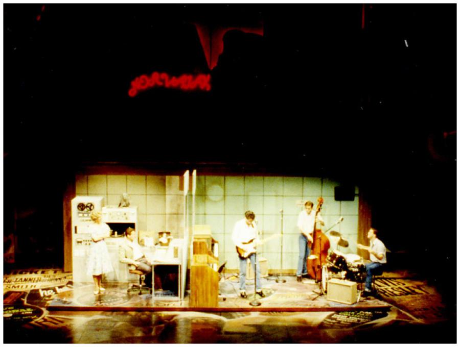 In 1988 I had designed what was essentially my first real show, a summer season variety show in my home town of Blackpool. My set stood out from the crowd because it was the first Blackpool show to really utilize the style and look of a prime time TV show in a theater environment. London theater producer Paul Eliott had seen the show and sent me a letter.. " come and meet me in London in the next few weeks " I had absolutely no idea what Paul had in mind when I took the long train ride from Blackpool to London. I struggled across Waterloo bridge with my large heavy portfolio crammed with what was almost entirely student projects. After I had struggled up 5 flights of stairs I must have looked a sweaty red faced nervous wreck when I first shook Pauls hand. Amazingly I left that office with a script for BUDDY the Buddy Holly story. I was 21 years old. Was Paul crazy ? he had just given a kid one year out of college with just one professional show under his belt a major West End musical to design. I was in up to my neck and the pressure was on, I had to learn fast.