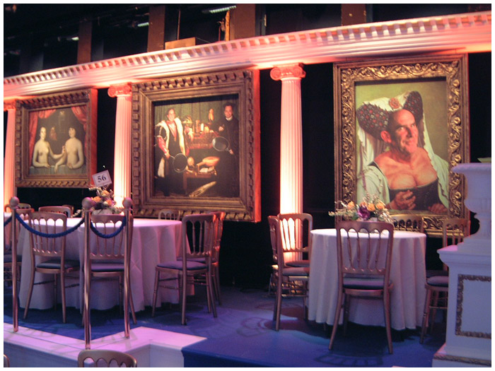 The first year I designed a Rio beach front party and the second year I contrasted that with an Art gallery where I created photoshop forges of famous paintings with contemporary celebrity faces inserted into the paintings.