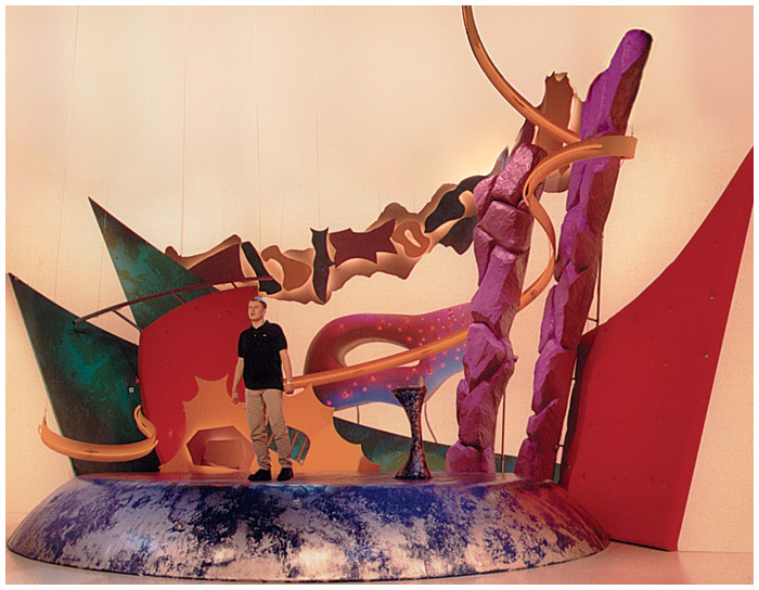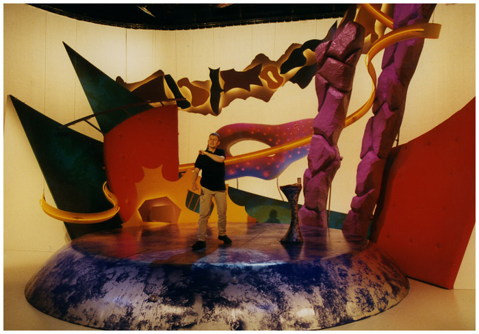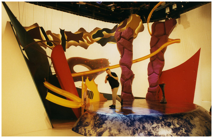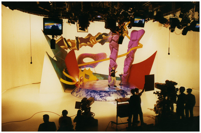 The set needed to be young and abstract to reflect patrick's style. Shot at fountain studios.