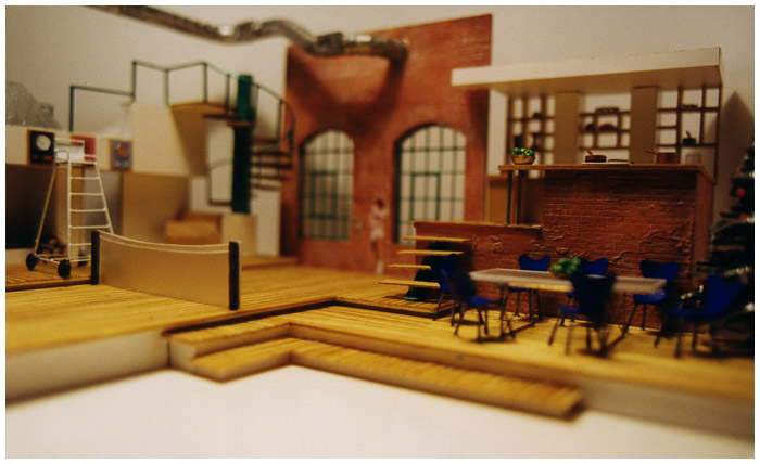 This big special was to be set in a tv showbiz version of Cliffs trendy warehouse loft apartment. The set was built and on the first day of the load in at the famous TC! At BBC Television centre the show was cancelled due to Cliff having contracted a throat infection ... we took the set down and trashed it ... never to be seen and only these model shots to show for it.