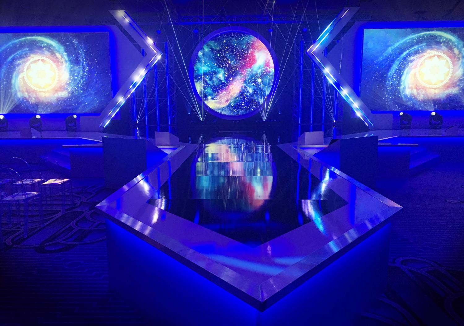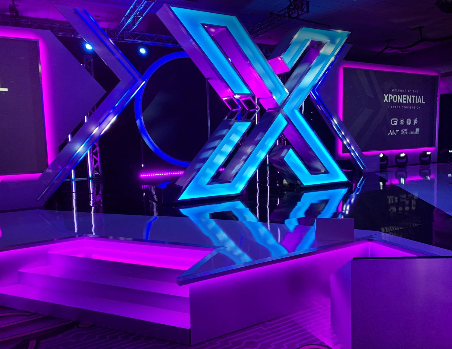 IN 2018 I DESIGNED A HUGE CORPORATE EVENT FOR FITNESS EMPIRE XPONENTIAL FITNESS WORKING WITH TOAST LA AND THE FOUNDER ANTHONY GEISLER. WE TOOK OVER THE FONTAINBLEAU HOTEL ON MIAMI BEACH WITH MULTIPLE MEETING ROOMS AND BALLROOMS BEING CONVERTED INTO MEETING AND EVENT SPACES.