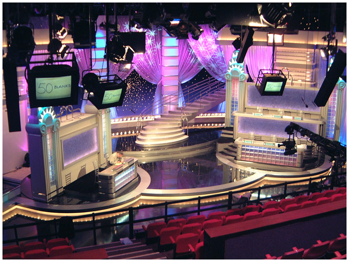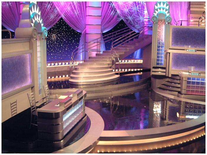 Known in the U.S. as the MATCH GAME , This show is one of those great institutions in British television . Celebrated for its awful tackiness but equally loved by the public for being so terrible. I got to design it twice for the BBC and then twice for ITV. The second set ( for itv ) was a glamorous homage to the classic Hollywood musical set designs..a perfect contradiction to the host ..drag queen lilly savage whos character is trailer park trash ..the clash worked perfectly.