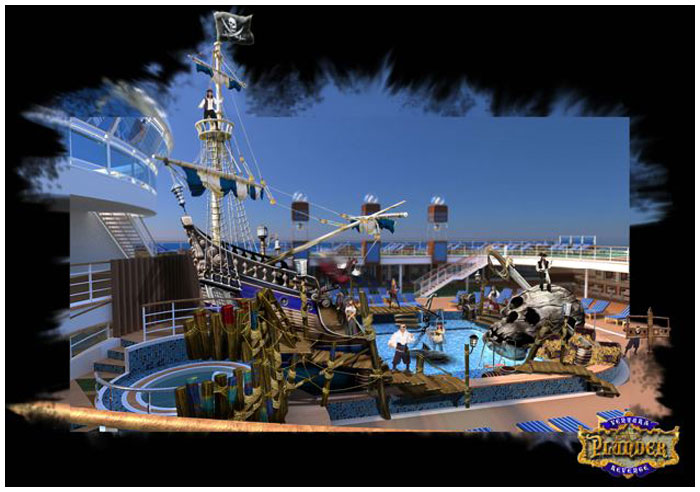 This Pirate stunt show had to load in to the public pool and pool deck in a matter of hours every week. I have designed 32 production shows for Jean Ann Ryan, widely considered the best producer of Cruise ship shows. These shows can still be seen cruising the world on Norweigan cruise line, P & O cruise lines and Cunard cruise lines.