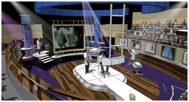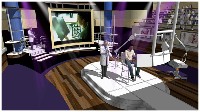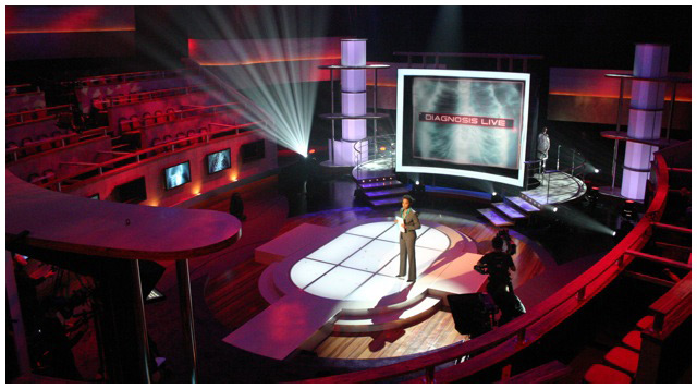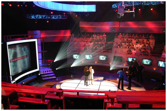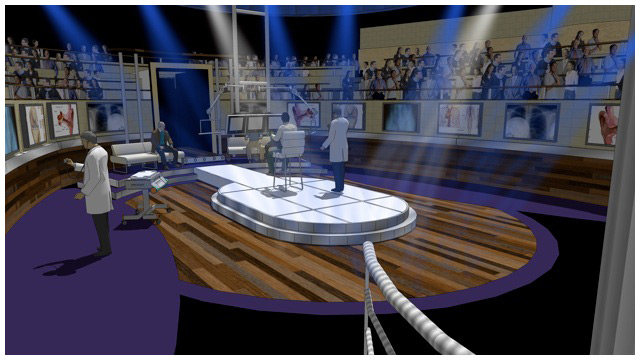 A new style of reality show meets informative medical show for Fox. I was given the task of reproducing a typical Victorian medical amphitheater, updating it to the 21st century and because of the sensitive content of the show not being too ' showbiz ' despite the show being in a prime time slot.