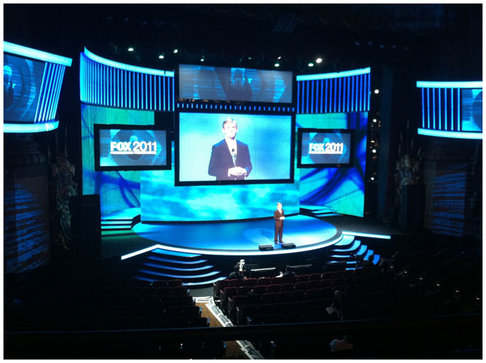 IN 2011 I DESIGNED MY FITH CONSECUTIVE YEAR OF THE FOX UP FRONTS IN NEW YORK. THIS VERSION WAS AT THE BEACON THEATER AND UTILIZED MORE VIDEO SCREEN TECHNOLOGY THAN WE HAD EVER ATTEMPTED IN PREVIOUS YEARS.