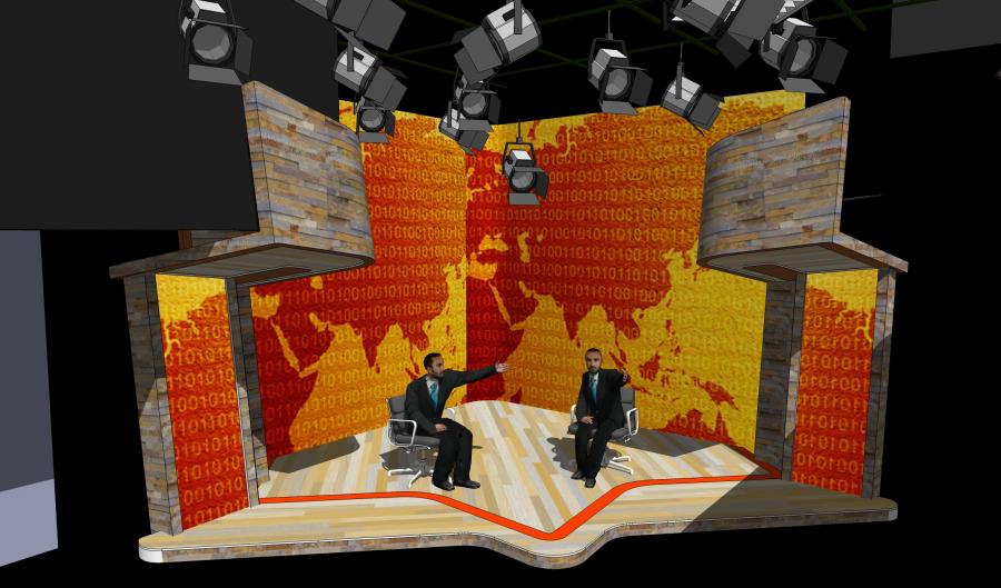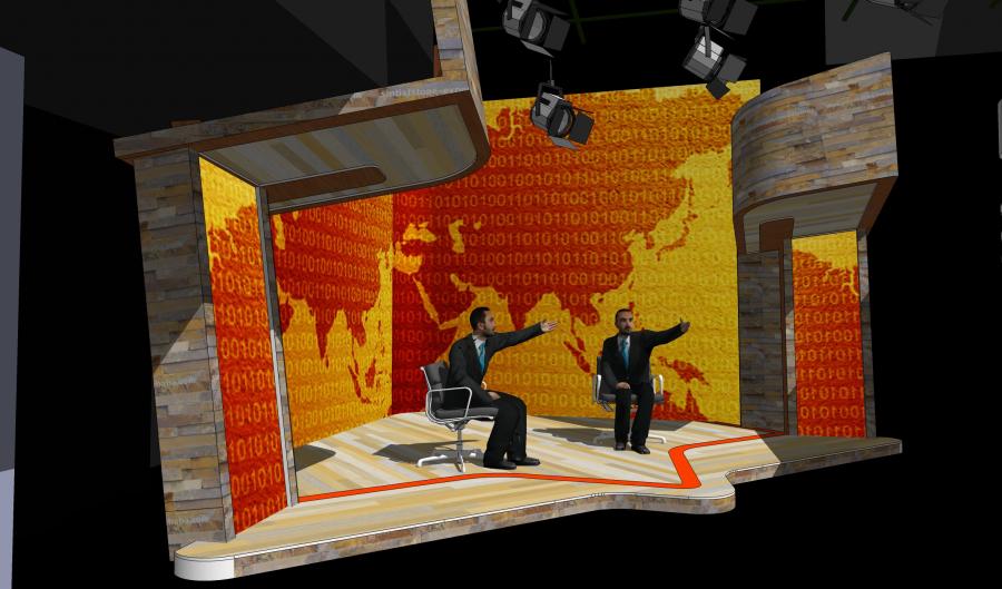 This tiny simple set employs forced perspective and the use of a large led screen to fool the audience into thinking it's a large space