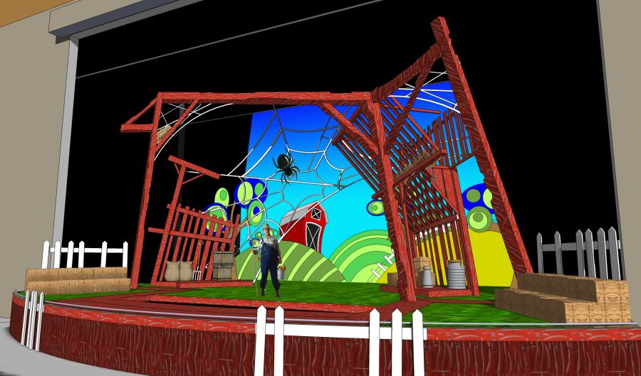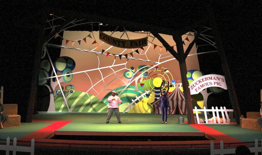 In the spring of 2013 I designed a children's musical version of the famous book Charlottes Web for the Las Vegas Shakespeare company. The show played in the enormous Henderson Pavilion . Starting as the sun set in this semi open air venue, this charming musical was a treat for the family audience and showcased a different style for me as I could create a whymsical cartoon world.