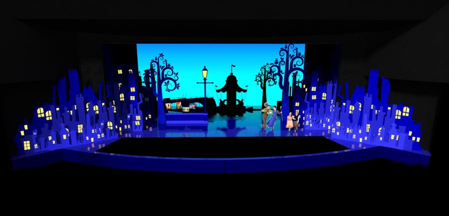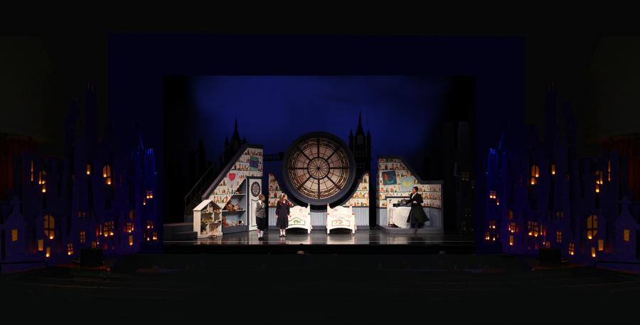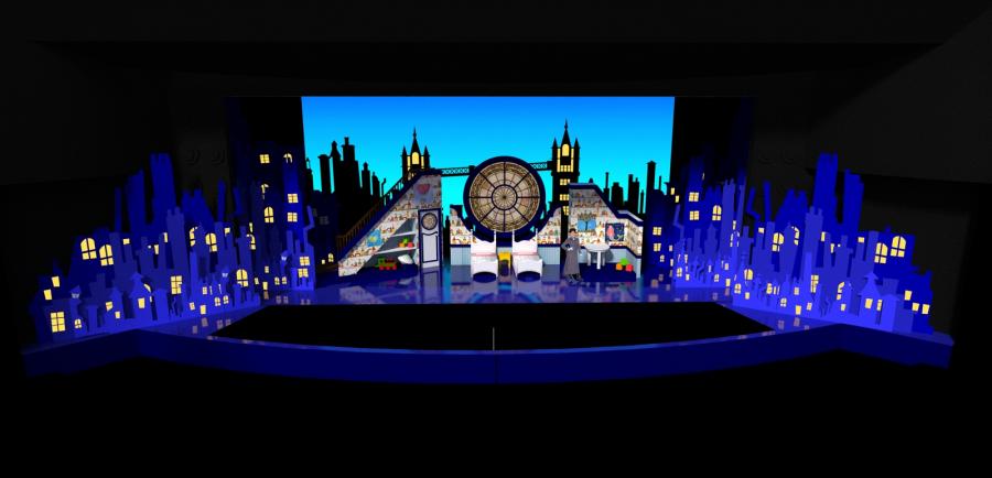 in 2015 I was asked to design Mary Poppins in Lubbock Texas. Lubbock is the home town of Buddy Holly and I had recreated many Lubbock locations in Buddy the Buddy Holly Story some 28 years previously. I wanted to work in Lubbock as a tribute to Buddy who changed my life forever. This show was HUGE ..28 musicians in the pit, 65 in the cast and 30 crew. The good will and desire for the show to succeed in a community that doesn't get touring shows pass through was intoxicating and I had a blast working in this small town that so wants to celebrate musical theater and did so on a grand scale.
