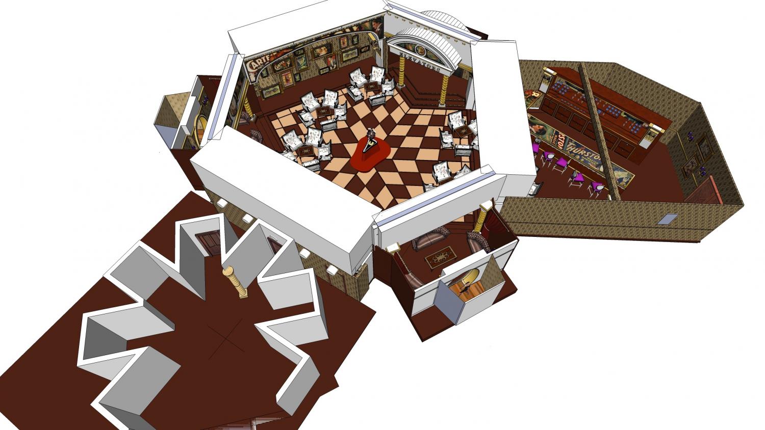 I was approached by Magician Michael Blanco to design an entire building, exterior and multiple interior environments for a Magical themed restaurant / dinner show experience to rival Hollywoods magic castle