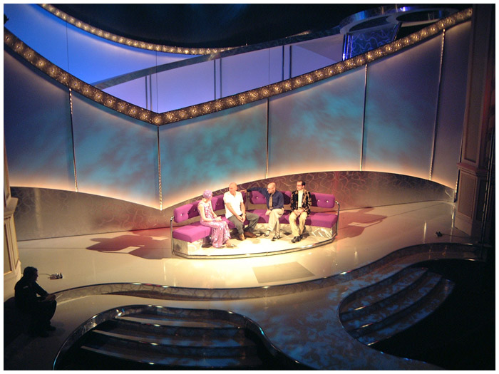 At the height of Michael Barrymore's fame we shot this series at the Wimbledon Theater. The set was designed to accommodate Michaels reputation for physically attacking the audience and so several catwalks, staircases etc where designed so that no member of the audience was safe.