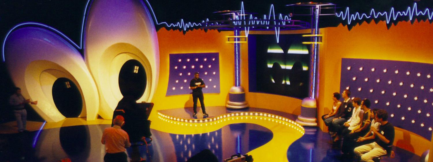 Shot at the TSW studios in Southampton this was a fun show. Basically a physical game show where contestants entered sit com style rooms behind the main set that where completely isolated from any light. BVS infrared cameras shot the antics of the ' blind ' contestants.