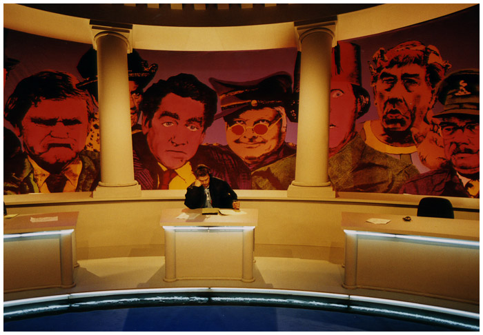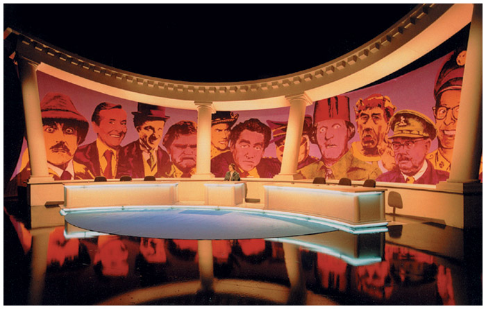Comedy panel show based around famous comedians from the past. Shot at fountain studios wembley.